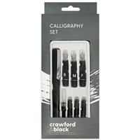 Practice the art of beautiful writing with this amazing Calligraphy Set from Crawford & Black! With 8 high quality pieces included, this is truly the perfect way to get started with calligraphy. Includes: 1 x Pen barrel 3 x Stainless steel nibs (fine, medium, broad) 3 x Black ink cartridges 1 x Ink pump Product information: Calligraphy set Brand: Crawford & Black 8 Piece Set Black Ink Measures: 16cm approx