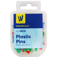 Put a pin in it with these Works Essentials Plastic Pins! This great pack of 60 plastic pins are a great addition to your office essentials. Simply use them to pin your desired items into a soft background such as wood, cork or plaster. Great for use at work or home! Product information: Plastic pins Brand: Works Essentials Stationery supplies Pack of 60