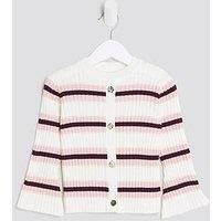 River Island Mini Girls Knitted Striped Cardigan Size & Fit Regular fit Available in sizes 12-18 months - 4-5 years Details Girls Knitted Striped Cardigan by River Island Mini Cream Round neckline Knitted Striped print Buttoned fastening Long sleeves Material & Care Material Content: Cotton: 100% Washing Instructions: Machine Washable