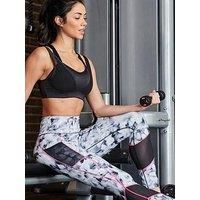 Pour Moi Energy Printed Mesh Panel Legging Refresh your workout wardrobe with these gorgeous leggings. In a super flattering high-waisted style, these have a clever hidden pocket for your key and a side mesh pocket for your phone, perfect for doing ParkRun! Made of sweat-wicking fabric and with stylish mesh inserts, match with the sports bra and wait for the compliments. High-waisted fitSweat wicking fabricMulti sport leggingSide mesh pocketsSheer mesh panel insertsPerfect for running, spinning, HIIT an...