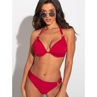 Pour Moi Samoa Ring Detail Brief We heard you were planning a holiday. Make sure you don't forget to pack the Samoa Brief. With a luxury gold ring feature this on-trend high-leg shape will flatter your sun kissed figure. Made from soft luxe shine fabric and featuring an elasticated waistband, feel comfortable and supported all day in these fabulous briefs. For the ultimate luxury holiday look match with a bikini top from the Samoa collection. Material Content: Poly amide 80 %, Elastane 20 % On-trend hi...