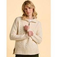 Brakeburn Untamed Jumper - Beige A cozy go-to for cooler days, this cream quarter-zip jumper offers a fitted shape with knitted details down the front. The thick ribbed hem and side slits add comfort and ease, making it a reliable staple for your winter layering essentials. Pair with colour or keep it simple with denim. Material Content: 50% Acrylic 31% Nylon 16% Wool 3% Elastane Washing Instructions: Machine Washable