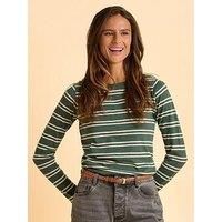 Brakeburn Canford Long Sleeve T-shirt - Green A relaxed layering essential, this lightweight 100% cotton tee in hunter green features cream-colour stripes and a pop of red embroidered logo on the chest. The crew neckline and hemline side slits make this your easy go-to, especially when styled with your favourite trousers. Material Content: 100% Cotton Washing Instructions: Machine Washable