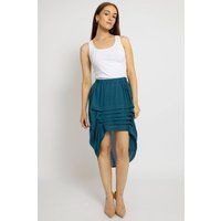 This chic skirt offers a modern twist on classic design. With its comfortable gathered waist and distinctive layered pleat detailing, it provides both comfort and a unique, fashion-forward appeal, creating a stylish texture and flowy silhouette. | Cutie London Women's Stylish Pleated Tiered Look Skirt in Teal | Size: 10 - Manufacturers part number: Cutie London_5052562008388