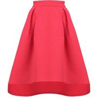 Inject a pop of colour into your wardrobe with this vibrant coral midi skirt. Featuring a chic high-low hem and elegant pleat details, its flattering A-line silhouette offers a sophisticated yet playful look for any occasion. Two front box pleats and side pockets. Centre back zip fastening. Length 75cm | Cutie London Women's Textured High-Low Pleated Midi Skirt in Coral | Size: 10 - Manufacturers part number: Cutie London_5052562991291