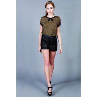 Elevate your evening look with these sophisticated black shorts, featuring a unique textured finish that catches the light. The flattering high-waist design makes them a versatile choice for a stylish night out or special occasion. Length 32cm | Cutie London Women's Textured Black High-Waist Shorts | Size: 14 - Manufacturers part number: Cutie London_5052562992533