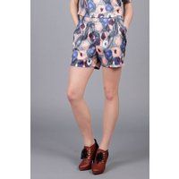 These stylish shorts feature a soft pastel floral and abstract print in shades of pink, blue, and purple. Designed with a high-waisted fit and a relaxed silhouette, they are perfect for creating a coordinated look with their matching top. Ideal for casual day outings, holidays, or summer events. | Cutie London Women's Pastel Floral Print High-Waisted Shorts in Pink | Size: 8 - Manufacturers part number: Cutie London_5052562994414