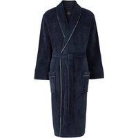 This supersoft dressing gown has been crafted from a cosy fleece fabric and accented with piping. Perfect for downtime, it is finished with patch pockets and a tie belt fastening. Made from 100% Polyester super soft polyester; 260 gms light weight but super warm and toasty. Piped detail around shawl collar. Length 117cm approx. Back neck hanging loop. | Savile Row Company London Men Supersoft Fleece Dressing Gown With Piping in Navy | Size: 2X-large