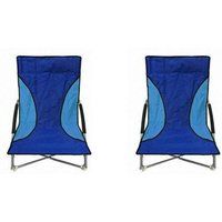 These chairs are lightweight and perfect for camping or lounging on the beach. When folded they are easy to transport in their nylon carry bag with shoulder strap. Made from durable and washable polyester canvas with a tubular metal frame, these low folding camping chairs can seat a whopping 80kgs. . . Weight: 2.5 KG . . Height of Backrest: 59cm . . Seat From Ground: 13cm . . Full Height when Open: 66cm . . Weight Limit: 100 Kg Safety Information:Warning. Not suitable for Children under 3 years. | Kandy Toys 2 Blue Nalu Folding Low Seat Beach Chairs - Manufacturers part number: Kandy Toys_5052615009188