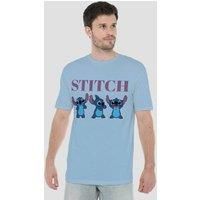 Genuine Disney merchandise with original design, licensed by Disney Pixar. Walt Disneys Lilo & Stitch is the animated science fiction comedy based around an unlikely yet adorable friendship. Six-year-old Hawaiian girl Lilo adopts dog or extra-terrestrial animal-like creature Stitch, and the pair form a close bond through the Hawaiian concept of Oshana, or extended family. Made from high quality material, these products are true to size and designed to last. | Disney Men Stitch Poses T-Shirt in Light Blu...