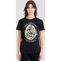MICKEY MOUSE LADIES T-SHIRT FOR WOMEN: Crafted from premium ringspun cotton, our T-shirts are the epitome of timeless style. Embrace your individuality with a look as distinct as you are. Created for everyday wear, our tees feature a breathable all-season mid-weight weave, ensuring comfort in a versatile tagless design. Beyond ordinary, our short-sleeve tee is built to last. | Disney Women's Mickey Mouse Friends Eggcellent Together At Easter T-Shirt, Black | Size: Medium - Manufacturers part number: Disney_5052777879537