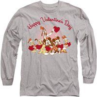 MICKEY MOUSE MENS LONG SLEEVE T-SHIRT: Crafted from premium ringspun cotton, our long sleeve T-shirts are the epitome of timeless style. Embrace your individuality with a look as distinct as you are. Created for everyday wear, our long sleevetees feature a breathable all-season mid-weight weave, ensuring comfort in a versatile tagless design. Beyond ordinary, this long-sleeve tee is built to last. | Disney Unisex Mickey Mouse Friends Happy Valentine's Day Long Sleeve T-Shirt, Athletic Heather in Light Grey | Size: Large - Manufacturers part number: Disney_5052777916997