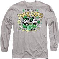 MICKEY MOUSE MENS LONG SLEEVE T-SHIRT: Crafted from premium ringspun cotton, our long sleeve T-shirts are the epitome of timeless style. Embrace your individuality with a look as distinct as you are. Created for everyday wear, our long sleevetees feature a breathable all-season mid-weight weave, ensuring comfort in a versatile tagless design. Beyond ordinary, this long-sleeve tee is built to last. | Disney Unisex Mickey Mouse Friends St Patrick's Day Mickey Minnie Pure Gold Long Sleeve T-Shirt, Athletic Heather in Light Grey | Size: Large - Manufacturers part number: Disney_5052777917840