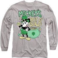 MICKEY MOUSE MENS LONG SLEEVE T-SHIRT: Crafted from premium ringspun cotton, our long sleeve T-shirts are the epitome of timeless style. Embrace your individuality with a look as distinct as you are. Created for everyday wear, our long sleevetees feature a breathable all-season mid-weight weave, ensuring comfort in a versatile tagless design. Beyond ordinary, this long-sleeve tee is built to last. | Disney Unisex Mickey Mouse Friends St Patrick's Day Mickey Pot o Gold Long Sleeve T-Shirt, Athletic Heather in Light Grey | Size: XL - Manufacturers part number: Disney_5052777917901