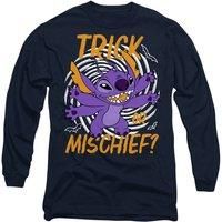 LILO AND STITCH MENS LONG SLEEVE T-SHIRT: Crafted from premium ringspun cotton, our long sleeve T-shirts are the epitome of timeless style. Embrace your individuality with a look as distinct as you are. Created for everyday wear, our long sleevetees feature a breathable all-season mid-weight weave, ensuring comfort in a versatile tagless design. Beyond ordinary, this long-sleeve tee is built to last. | Disney Unisex Lilo Stitch Trick or Mischief Long Sleeve T-Shirt, Navy | Size: Large - Manufacturers part number: Disney_5052777920246