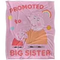 PEPPA PIG - 300 GSM fabric provides warmth and comfort yet is lightweight and breathable, that will make a great decorative addition to any room. | Hasbro Peppa Pig Promoted To Big Sister Silky Touch Blanket 50" X 60" In White - Manufacturers part number: Hasbro_5052777952971