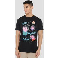 PEPPA PIG TV UNISEX T-SHIRT FOR MEN & WOMEN: Crafted from premium ringspun cotton, our T-shirts are the epitome of timeless style. Embrace your individuality with a look as distinct as you are. Created for everyday wear, our tees feature a breathable all-season mid-weight weave, ensuring comfort in a versatile tagless design. Beyond ordinary, our short-sleeve tee is built to last. | Hasbro Peppa Pig Out Of This World Daddy Pig T Shirt, Black - Manufacturers part numbers: UKAT-01-HBRO10576UK|Hasbro_5052777977936