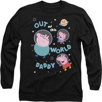 PEPPA PIG TV MENS LONG SLEEVE T-SHIRT: Crafted from premium ringspun cotton, our long sleeve T-shirts are the epitome of timeless style. Embrace your individuality with a look as distinct as you are. Created for everyday wear, our long sleevetees feature a breathable all-season mid-weight weave, ensuring comfort in a versatile tagless design. Beyond ordinary, this long-sleeve tee is built to last. | Hasbro Peppa Pig Out Of This World Daddy Pig Long Sleeve T Shirt, Black - Manufacturers part numbers: Hasbro_5052777977998|UKAL-01-HBRO10576UK