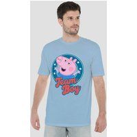 PEPPA PIG TV UNISEX T-SHIRT FOR MEN & WOMEN: Crafted from premium ringspun cotton, our T-shirts are the epitome of timeless style. Embrace your individuality with a look as distinct as you are. Created for everyday wear, our tees feature a breathable all-season mid-weight weave, ensuring comfort in a versatile tagless design. Beyond ordinary, our short-sleeve tee is built to last. | Hasbro Peppa Pig George Pig Team Boy Badge T Shirt, Sky Blue - Manufacturers part number: Hasbro_5052777981506