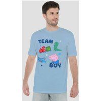 PEPPA PIG TV UNISEX T-SHIRT FOR MEN & WOMEN: Crafted from premium ringspun cotton, our T-shirts are the epitome of timeless style. Embrace your individuality with a look as distinct as you are. Created for everyday wear, our tees feature a breathable all-season mid-weight weave, ensuring comfort in a versatile tagless design. Beyond ordinary, our short-sleeve tee is built to last. | Hasbro Peppa Pig George Pig Team Boy Icons T Shirt, Sky Blue - Manufacturers part numbers: UKAT-54-HBRO10589UK|Hasbro_5052777981650