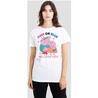 PEPPA PIG TV LADIES T-SHIRT FOR WOMEN: Crafted from premium ringspun cotton, our T-shirts are the epitome of timeless style. Embrace your individuality with a look as distinct as you are. Created for everyday wear, our tees feature a breathable all-season mid-weight weave, ensuring comfort in a versatile tagless design. Beyond ordinary, our short-sleeve tee is built to last. | Hasbro Peppa Pig Family Pink Or Blue We Love You T Shirt, White - Manufacturers part numbers: UKWT2-65-HBRO10599UK|Hasbro_5052777982640