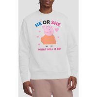 PEPPA PIG TV UNISEX SWEATSHIRT: Express your authenticity with a look as unique as you are. Designed for daily wear, our sweatshirt showcases a breathable all-season mid weight weave in a versatile tagless top that pairs with everything from freshly pressed jeans, to your favourite sweatpants. Beyond basic, our long-sleeve sweatshirt is made to go the distance. | Hasbro Peppa Pig Mummy Pig He Or She Womens Sweatshirt, White - Manufacturers part number: Hasbro_5052777982800