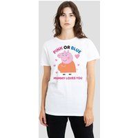 PEPPA PIG TV LADIES T-SHIRT FOR WOMEN: Crafted from premium ringspun cotton, our T-shirts are the epitome of timeless style. Embrace your individuality with a look as distinct as you are. Created for everyday wear, our tees feature a breathable all-season mid-weight weave, ensuring comfort in a versatile tagless design. Beyond ordinary, our short-sleeve tee is built to last. | Hasbro Peppa Pig Pink Or Blue Mummy Pig Loves You T Shirt, White - Manufacturers part number: Hasbro_5052777982954