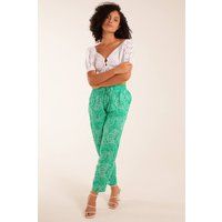 Lightweight and soft trousers with an elasticated waist for extra comfort. | Blue Vanilla Women's Leaf Print Capri Trousers in Green | Size: Small - Manufacturers part number: Blue Vanilla_5052868577366