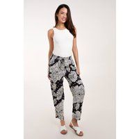 Easy wearing bottoms, that give a formal look! Team these with a basic tee and either trainers or kitten heels, and let the tropical print bottoms do the talking this Summer! | Blue Vanilla Women's Printed Trousers in Navy | Size: Small - Manufacturers part number: Blue Vanilla_5052868625586