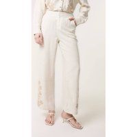 Add a new spin on your linen trousers this summer! | Blue Vanilla Women's Off White Linen Flower Embroidery Trousers | Size: Large - Manufacturers part number: Blue Vanilla_5052868683449