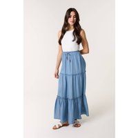 A fun, feel good denim skirt to be worn through out the hot weather. An easy option that can be teamed with sandals and provide a great outfit. | Blue Vanilla Women's Blue Beaded Tiered Midi Skirt | Size: Large/XL - Manufacturers part number: Blue Vanilla_5052868687805