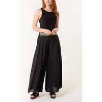 Combining the lightness of a loose fit with the nostalgic appeal of summer style, these trousers are the perfect piece to express your individuality this summer distinctive vintage pattern adds a touch of old world charm. | Blue Vanilla Women's Black Wide Leg Embellished Linen Trousers | Size: Small - Manufacturers part number: Blue Vanilla_5052868756662