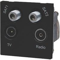 TV, FM and satellite quadruplexer unit for connection to a single co-axial aerial lead with two satellite, TV and FM signals combined. TV, FM Radio & Satellite Sockets Requires 35mm Back Box Screw Terminals Female, Male & 2 x F-Type Sockets For AV Installations - Manufacturers part number: 68045