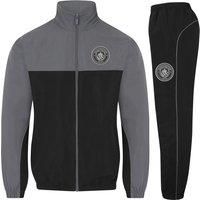 Our Manchester City Men's Tracksuit is an essential for all Citizens. This loose-fit tracksuit is made from 100% polyester for durability and a lightweight feel. The tracksuit features long sleeves, double pocketed zip-up jacket with MCFC branded zip and elasticated hem. Also included are mesh lined tracksuit pants featuring inner drawstring with elasticated waistband and ankle cuffs. The tracksuit is completed with the woven Manchester City logo to the left chest of the jacket and left trouser leg. Ma...