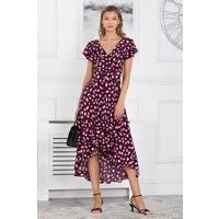 Floaty and fabulous - add this dip hem ruffle dress from Jolie Moi to your wardrobe for a look like no other. Crafted from a soft and fluid jersey fabric, this V-neck dress comes with oversize frilly collar which add interest and cover the shoulders, whilst the ruched waistband creates a form-flattering silhouette. Finished off with a handful of ruffles along the side and dipped hemline. In a refined style that softly drapes and flares out at the hem for added movement, this maxi dress by Jolie Moi is decorated in an on-trend animal print for wild appeal. | Jolie Moi Women's Sylvie Print Ruffle Dip Hem Dress in Navy | Size: 8 - Manufacturers part number: Jolie Moi_5053319345862
