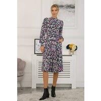 Smartening your look with this timeless midi dress from Jolie Moi, it is ideal for work or play. Framed with a turtle neckline and long sleeves, this piece nips you in all the right places. This effect is repeated around the elasticated waistline and long voluminous sleeves. A simple style that ensures an effortless, elegant look for smart or casual days. | Jolie Moi Women's Kathryn Long Sleeve Midi Dress in Purple | Size: 10 - Manufacturers part number: Jolie Moi_5053319365662