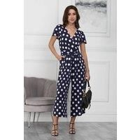 Framed with a flattering wrap-over front and cap sleeves, this jumpsuit from Jolie Moi is shaped to a wide leg and is made with durable fabric for longevity of wear. Injected with animal print with a self tie detail under the bust, it's the perfect slinky style for daytime and parties alike. | Jolie Moi Women's Devorah Culotte Jumpsuit in Dark Navy | Size: 8 - Manufacturers part number: Jolie Moi_5053319371748