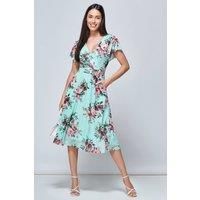In a flattering fit-and-flare silhouette, this dress by Jolie Moi is cut from a premium mesh fabric with full lining. Accentuating the figure with a V neckline and short angel sleeves, it has an elegant floral pattern design that is perfect that summer wedding or garden party. | Jolie Moi Women's Kiley Wrap Front Mesh Dress in Light Green | Size: 8 - Manufacturers part number: Jolie Moi_5053319378044