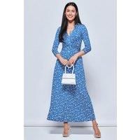 Opt for a feminine edge to your wardrobe this Spring Summer season. The Hayat maxi dress is complimented with a luxurious floral print, a decorative twisted knot front, a self tie in the back for a true to fit silhouette, and 3/4 length sleeves. Dress it up or down with a pair of trainers or heels. | Jolie Moi Women's Hayat Twist Front Jersey Maxi Dress in Blue | Size: 18 - Manufacturers part number: Jolie Moi_5053319418825