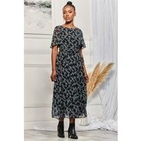Crafted from premium chiffon fabric, this maxi dress from Jolie Moi ensures to maximize the impact designed in a muted navy floral print for a retro appeal. Fitted with a round neckline that dips into a slight v neck back, and angel sleeves. Detailed with a tie waist and pockets for all your pratical needs. | Jolie Moi Women's Angel Sleeve Chiffon Maxi Dress in Black | Size: 8 - Manufacturers part number: Jolie Moi_5053319432197