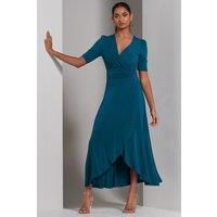 Indulge in timeless elegance with the Olana Frill Hem Jersey Maxi Dress from Jolie Moi. Featuring short fitted sleeves, a wrapped v-neckline, and a ruched self-tie waist to give you a flattering customised. The frill hem detail adds a touch of femininity and movement, while the non-static jersey fabric drapes effortlessly, creating a flattering silhouette. - Manufacturers part number: Jolie Moi_5053319461401