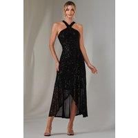 The Cross Neck Frill Hem Maxi Dress from Jolie Moi is a breathtaking choice for any special occasion. This sleeveless design features a unique cross-neck detail that beautifully accentuates the neckline. Adorned with shimmering rose gold sequins, it catches the light with every movement, while the frill hem adds a playful touch. The back zip closure ensures a flattering fit, making this maxi dress both stylish and comfortable for evening events or celebrations. Perfect for making a statement, it's a mu... - Manufacturers part number: Jolie Moi_5053319513056