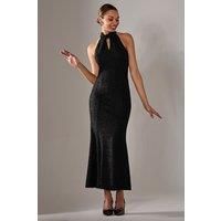 Exude old Hollywood glamour with the Halter Neck Fishtail Maxi Dress by Jolie Moi. Crafted from a luxurious textured fabric, this dress is defined by depth and sophistication. The twist-style halterneck is unique, and keyhole openings at both the front and back add a hint of allure. Refined with a button-up neck and concealed back zipper, youll feel like a vision of elegance at any special occasion. Model height- 170cm and wears a size 8, length 137cm. - Manufacturers part number: Jolie Moi_5053319525431