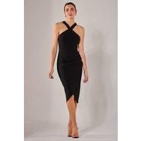 Stun the room in the Cross Over Halter Neck Midi Dress by Jolie Moi. This cocktail dress combines allure and modern sophistication with its flattering midi length and textured fabric. Side ruched detailing adds a touch of elegance, while the cross-over halter neck creates a bold, contemporary silhouette. Fully lined for a smooth fit and finished with a concealed back zipper, it promises both comfort and style. Perfect for an evening date or a night out with friends, this dress will make you feel confide...