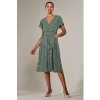 Fall in love with our Short Sleeve Side Tie Midi Dress, the perfect piece for elevating your work and occasion wardrobe. This chic midi dress with short floaty sleeves is adorned in a geometric yet feminine print, and features a gathered waist band which helps create a cinched and flattering silhouette, as well as a tie waist band and a faux wrap v neckline. The fit and flare skirt falls at the perfect length, made from comfortable and floaty fabric that sits perfectly on the body. - Manufacturers part number: Jolie Moi_5053319530466