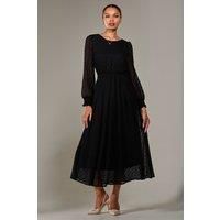 Fall in love with our Long Sleeve Chiffon Midaxi Dress, the most gorgeous addition to your dress collection. Crafted from soft textured chiffon fabric, this dress flows beautifully down to a long maxi skirt, and is cinched at the waist by an elasticated waist band with a tie belt to create a flattering yet comfortable silhouette. It also has a modest round neckline and long sleeves with shirred cuffs that gather the perfect amount, whilst still being light and airy. The v back neckline flows int... - Manufacturers part number: Jolie Moi_5053319531654