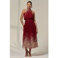Fall in love with the Pleated Halterneck Maxi Dress from Jolie Moi. Combining elegance and femininity with an extremely flattering neckline and silhuoette, this dress would be the perefcet fit for any bridesmaid, as well as being an amazing summer piece. The pleated fabric combined with the use of floaty, floral print gives it an elevated look, whilst still having an aire of simplicity and sophisticated style. Attention to detail is key in this piece, with its tie neck detail being the perfect additon to this sleeveless maxi dress. Length- 128cm | Jolie Moi Women's Pleated Halterneck Maxi Dress in Dark Red | Size: 16 - Manufacturers part number: Jolie Moi_5053319536697