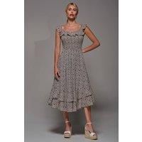 Slip into our adorable Shirred Ruffle Sleeve Tiered Midi dress from Jolie Moi, perfect for your next summer picnic. As you step outside into the sunshine, this dress will quickly become your go-to for relaxed days. Featuring a flattering ruffle scoop neckline and a comfortable elasticated shirred bodice, it allows you to move freely while staying effortlessly stylish. The flowy skirt invites you to twirl through the day, while the playful ruffled hem adds a fun, whimsical detail. | Jolie Moi Women's Shirred Ruffle Sleeve Tiered Midi Dress in Navy | Size: 16 - Manufacturers part number: Jolie Moi_5053319539919