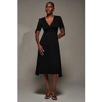 Jersey Tie Sleeve Wrap Front Midi Dress