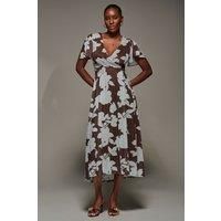 Turn heads in the Mesh Short Sleeve Midmaxi Dress by Jolie Moi, with its beautiful floral print layered over a soft mesh fabric. The waistband is comfortable and flattering due to the stretch fabric, as well as being an over the head style with a faux wrap v neckline. The slightly ruffled skirt and floaty sleeves gives it movement so you can move freely and easily, in addition to it being the perfect midmaxi length and having discreet pockets, adding an element of functionality to this elegant piece. | Jolie Moi Women's Mesh Short Sleeve Midaxi Dress in Brown | Size: 18 - Manufacturers part number: Jolie Moi_5053319540892